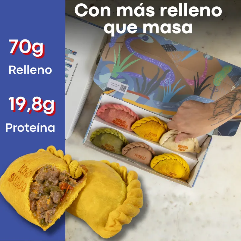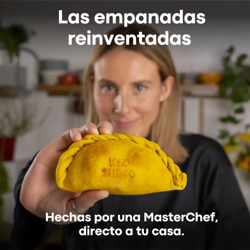 ¡Nuestros 6 Bestsellers! Lomo, Chupe, Pollo, Mechada, Nutella y Manzana Canela. Ándate a la segura con nuestra caja Masterchef, rellena con las 6 favoritas de nuestra chef Cami y del público 🔥 Lomo Saltado, Mechada Queso, Chupe Palmitos, Pollo Huancaína, y nuestras empanaditas dulces más pequeñas de Nutella y Manzana Canela. Perfecto para compartir entre 2 o 3!